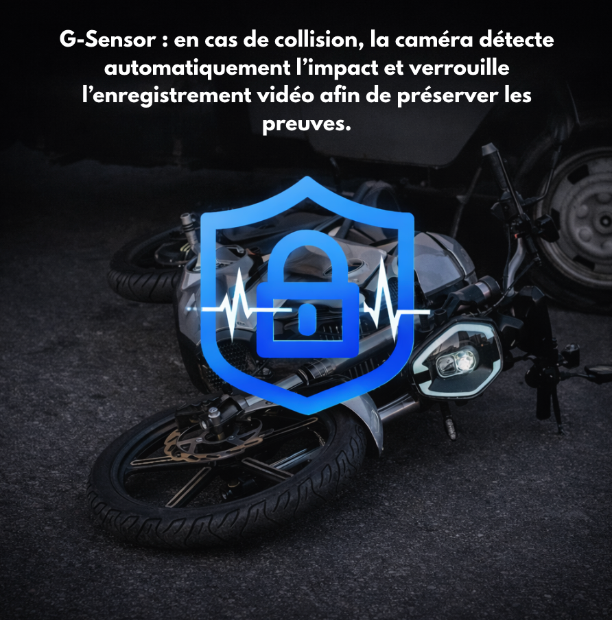 Il propose un enregistrement en boucle avec sauvegarde automatique des séquences en cas de choc grâce au capteur G-sensor.