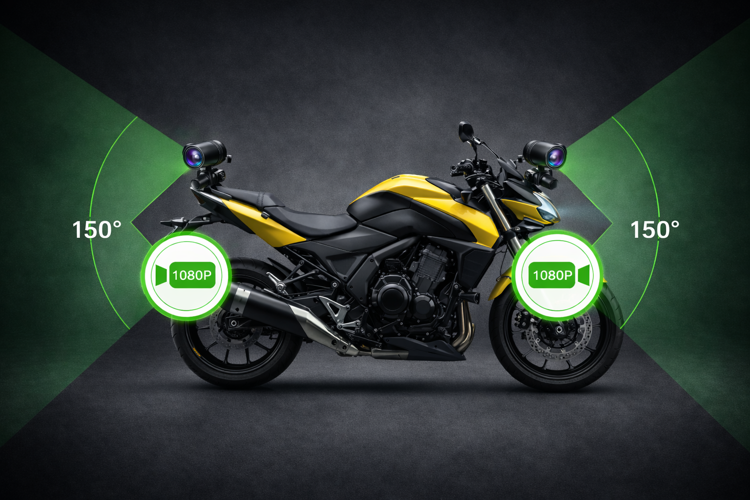 Caméra embarquée pour moto avec enregistrement avant et arrière en Full HD 1080P.